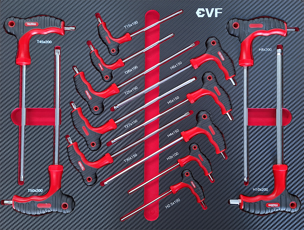 - Cajón 5: Mango en T hexagonal ( 3 x 115mm ; 4 x 120mm ; 5 x 140mm ; 6 x 160mm ; 7 x 170mm ; 8 x 175mm ; 10 x 200mm ) – Mango en T TX T10 – T40 mangos de herramientas gris negro