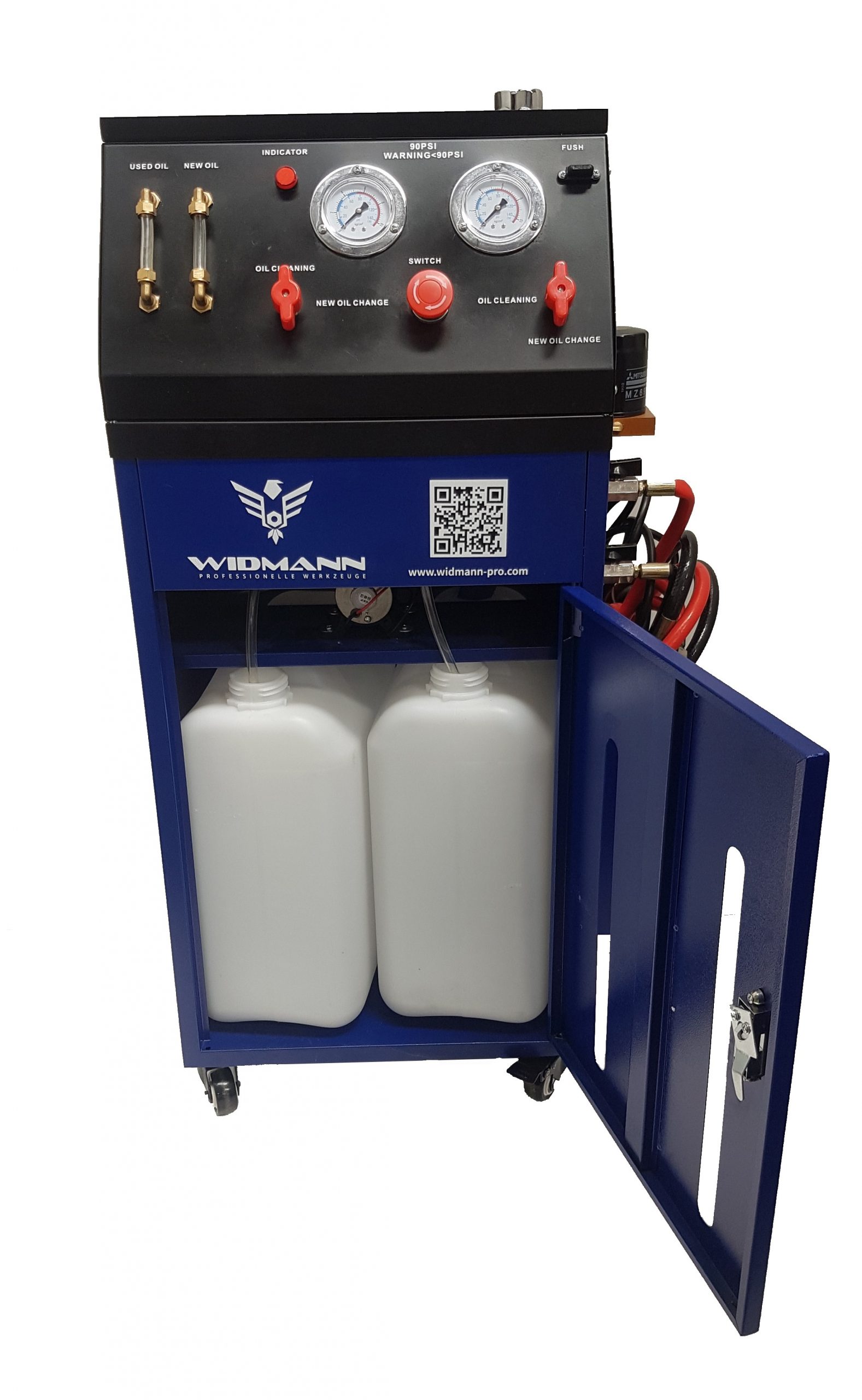 - 2x Envases cada uno de 25 litros para aceite nuevo y usado (dentro de la máquina)